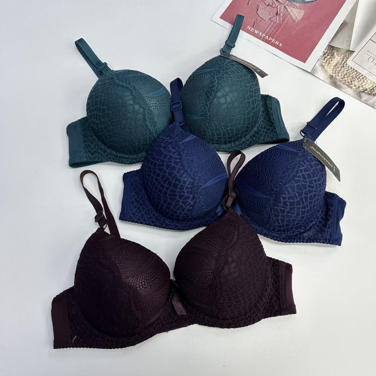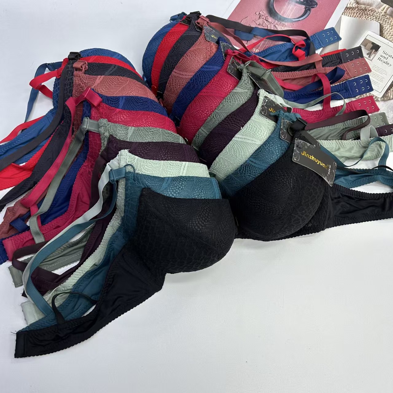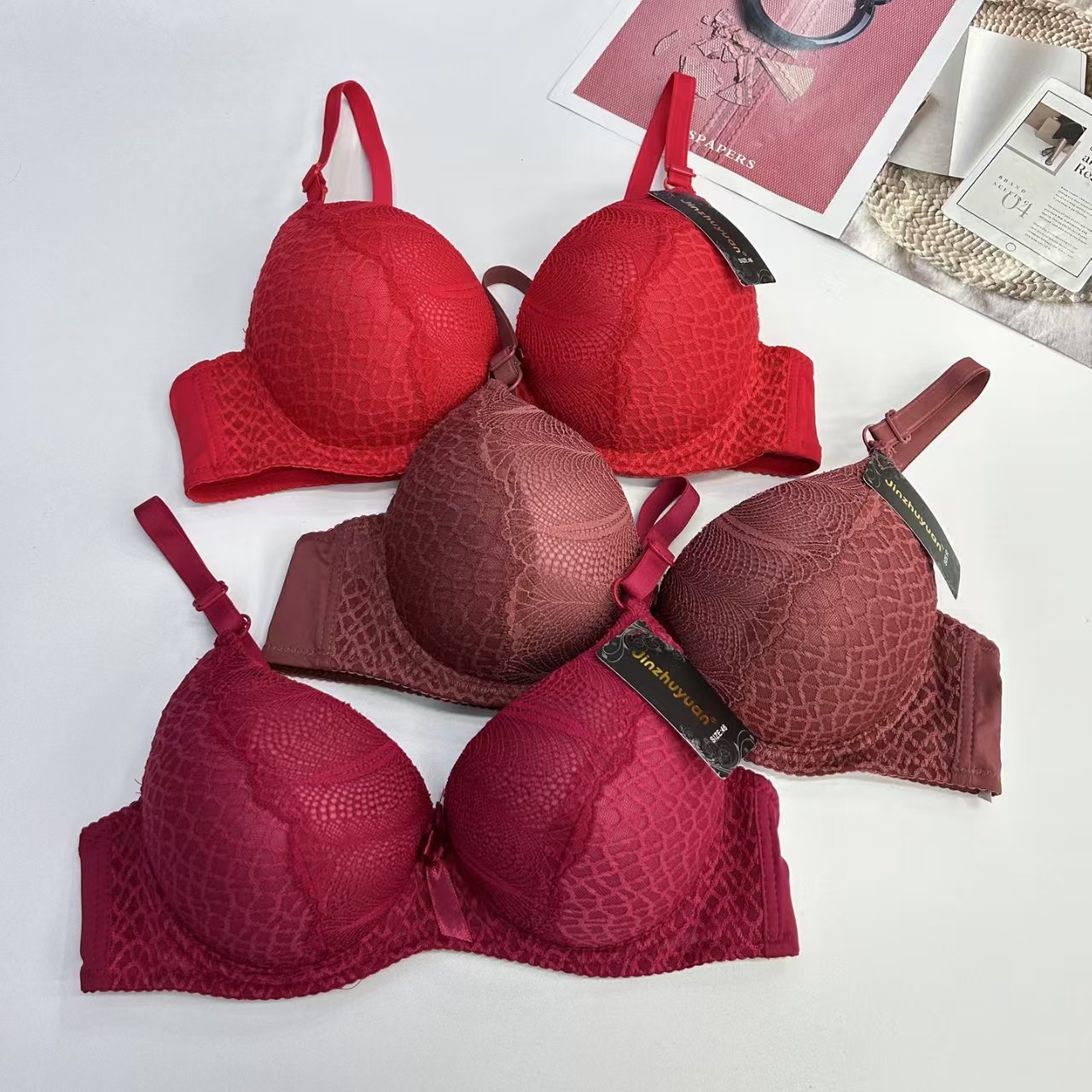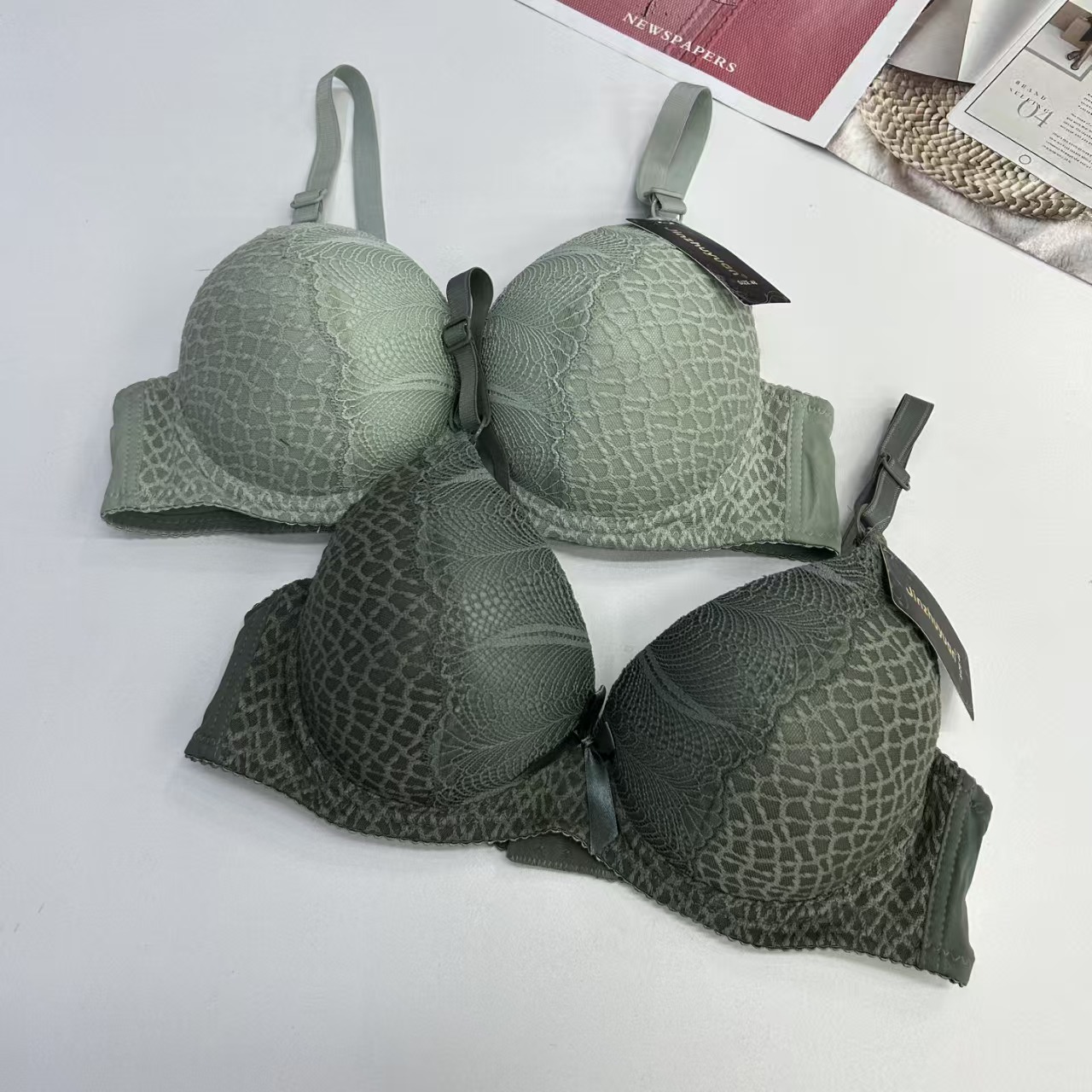 外贸出口文胸大码加厚文胸蕾丝绣花蝴蝶结有钢圈内衣防滑时尚舒适女士文胸