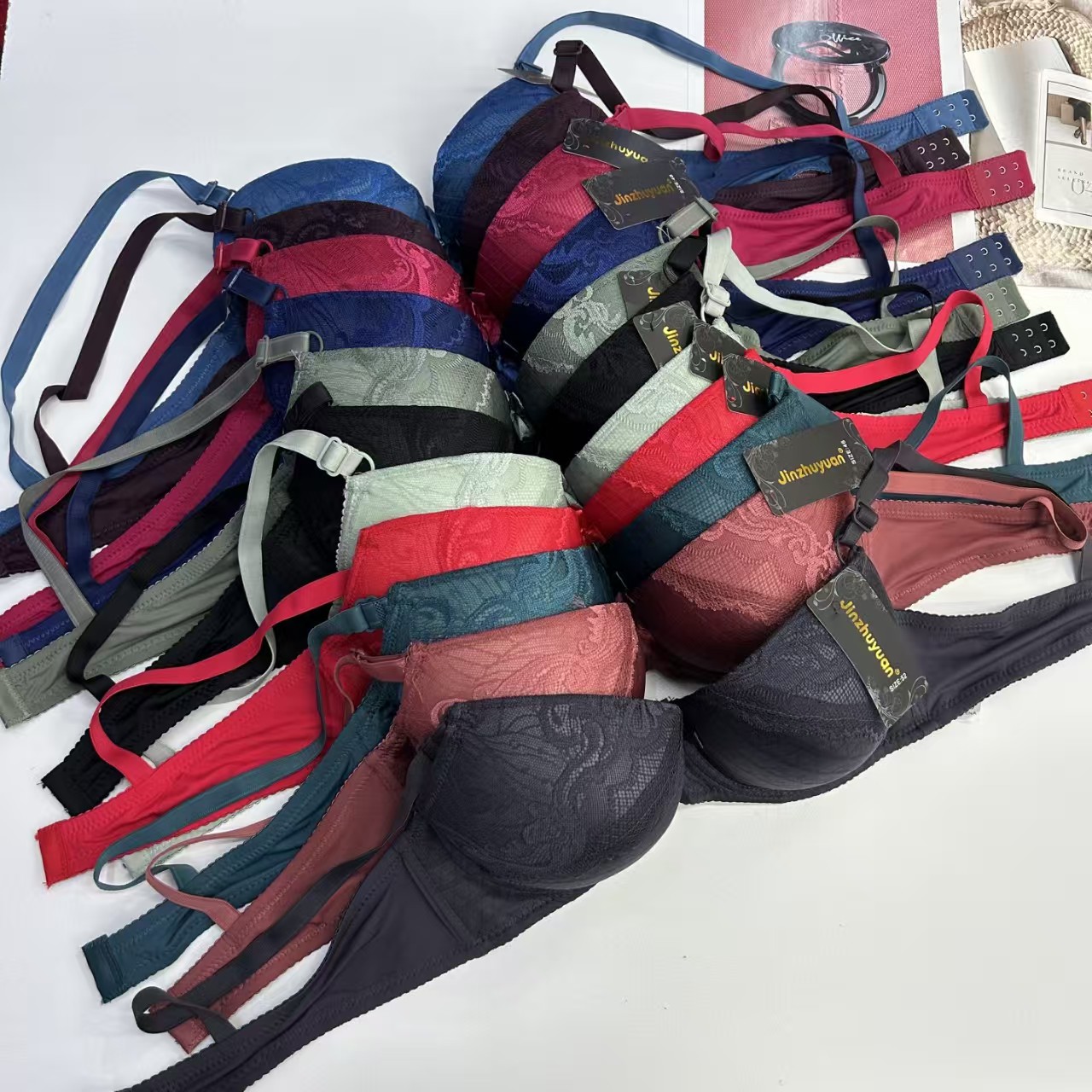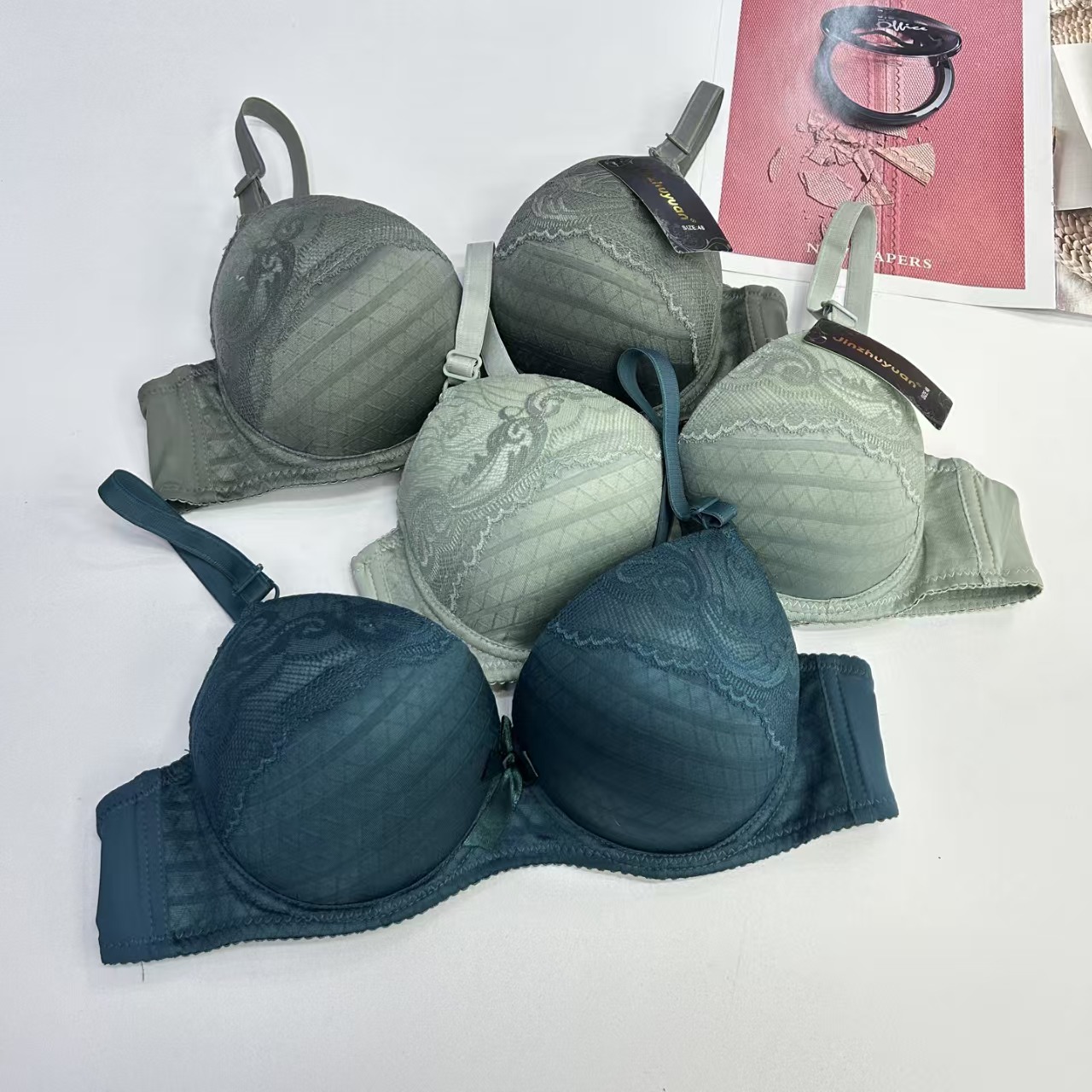 外贸出口文胸大码加厚文胸蕾丝绣花蝴蝶结杯面有钢圈内衣防滑时尚女士性感文胸
