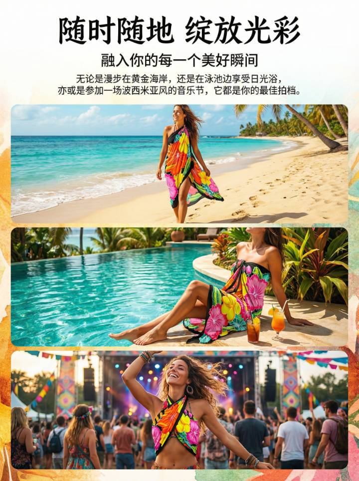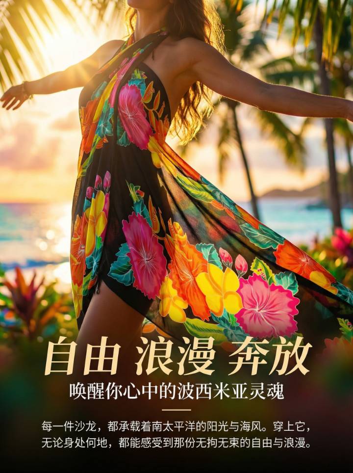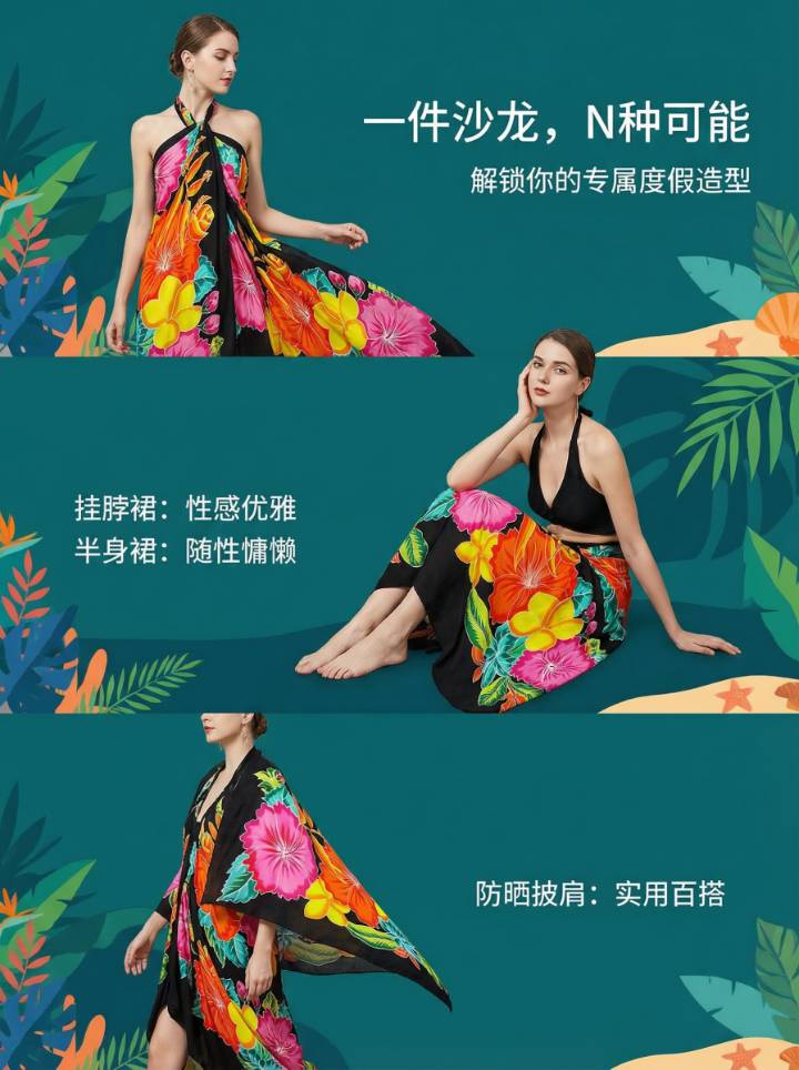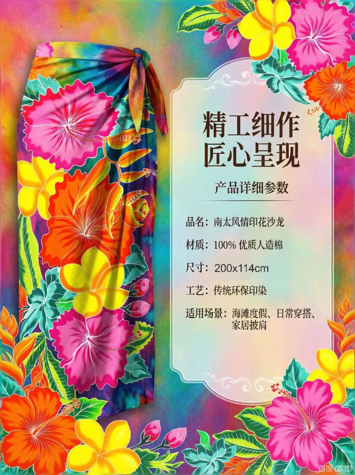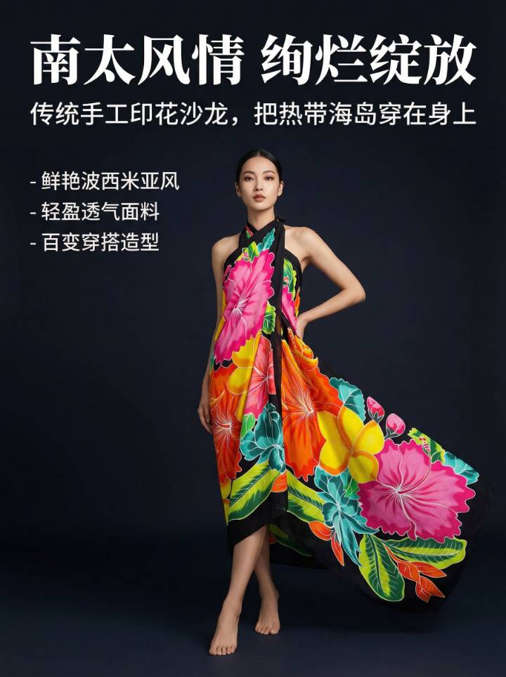 宝蓝色 花卉手绘款 — 夏威夷巴厘纱笼 蜡染沙滩裹裙 密拷锁边 — 200×114cm